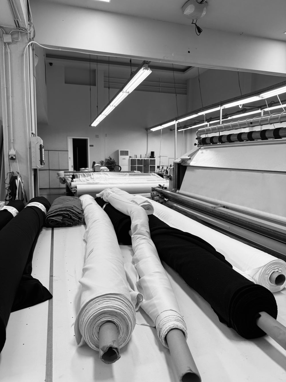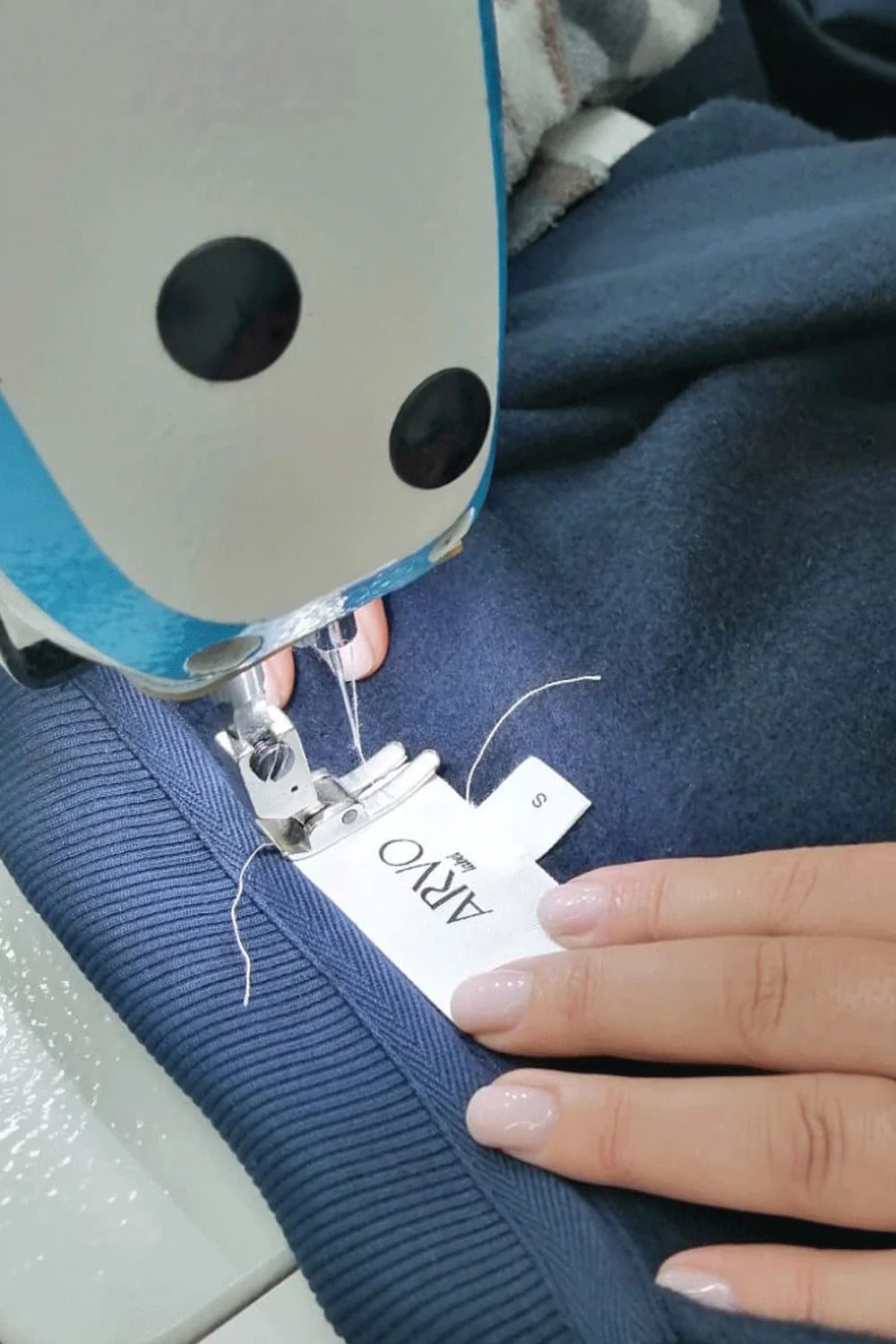 Pour donner vie à cette intention, ARVO s’appuie sur un partenaire industriel rigoureux, un acteur du secteur textile européen qui partage la même quête d’excellence — un atelier avec des moyens techniques avancés, une culture de la qualité et le souci de maîtriser chaque étape.